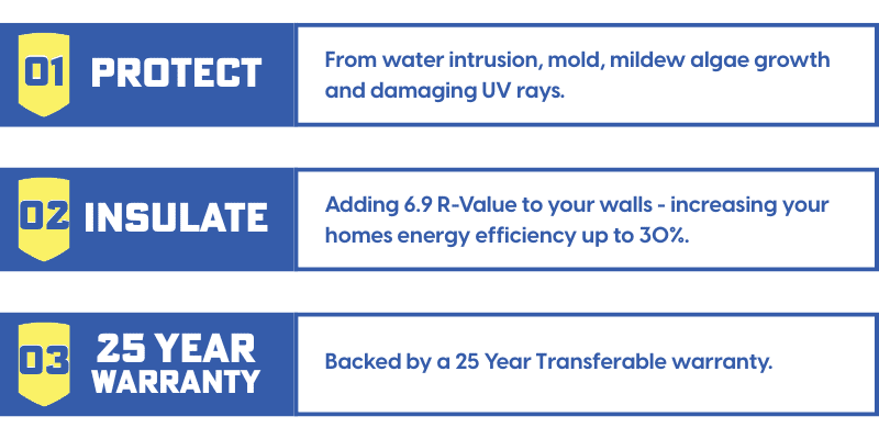 Rhino Shield is a ceramic-based acrylic coating system for the exterior of your home. It goes on LIKE paint, but it does 3 Things that paint does not.