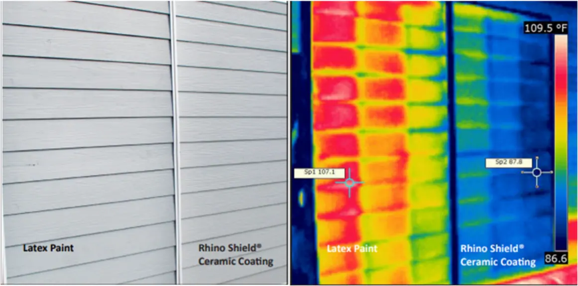 Real-world thermal studies in Florida showed Rhino Shield kept walls 30 degrees cooler and roofs with Super Shield coating 25 degrees cooler, cutting down heat transfer into the home.